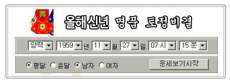 토정비결은 한 해의 운수를 알아보는 대표적인 운수풀이 방법으로, 운세 산출 공식에 충실하게 현대적으로 프로그램하여 정확한 괘를 얻을 수 있도록 하였으며 괘의 풀이 또한 현대인들이 알기 쉽도록 풀이 하였습니다.